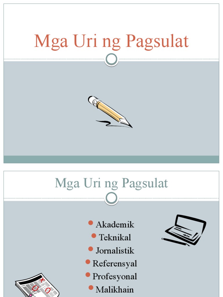 Akademikong pagsulat from cdn.slidesharecdn.com Maaaring gawin ito sa pamamagitan ng sumusunod: 3 on a question anong uri ng pagsulat ayon sa layunin ang iyong nabasa na doityourself. Add your answer and earn points. The final cost of the certain equipment is php 3060 after successive discounts of 15% and 10% have been made on the market price. Pagsulat ng abstrak aralin 2: Uri ng pagsulat sa larangan ng panitikan. Kongklusyon maraming salamat sa inyong pakikinig! Ano ang dalawang uri ng layunin ng pagsulat?
